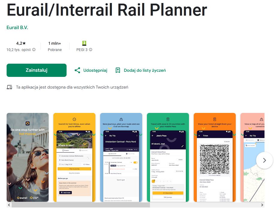 Wszystkie informacje, które mogą Ci się przydać podczas podróży z biletem Interrail znajdziesz także w darmowej aplikacji mobilnej Rail Planner.