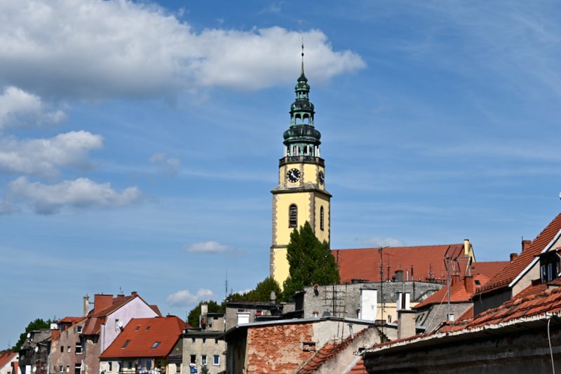 Dominująca nad miastem gotycka świątynia o skomplikowanej bryle. Jej historia sięga XIII wieku – pierwsza wzmianka pochodzi z 1336 roku. Wnętrze kryje wiele cennych zabytków: gotycką rzeźbę Matki Boskiej z Dzieciątkiem, kamienną chrzcielnicę z 1577 roku, barokowe figury i neogotycki ołtarz. Kościół przeszedł wiele przebudów, co sprawia, że dziś jego architektura jest niezwykle różnorodna i intrygująca.