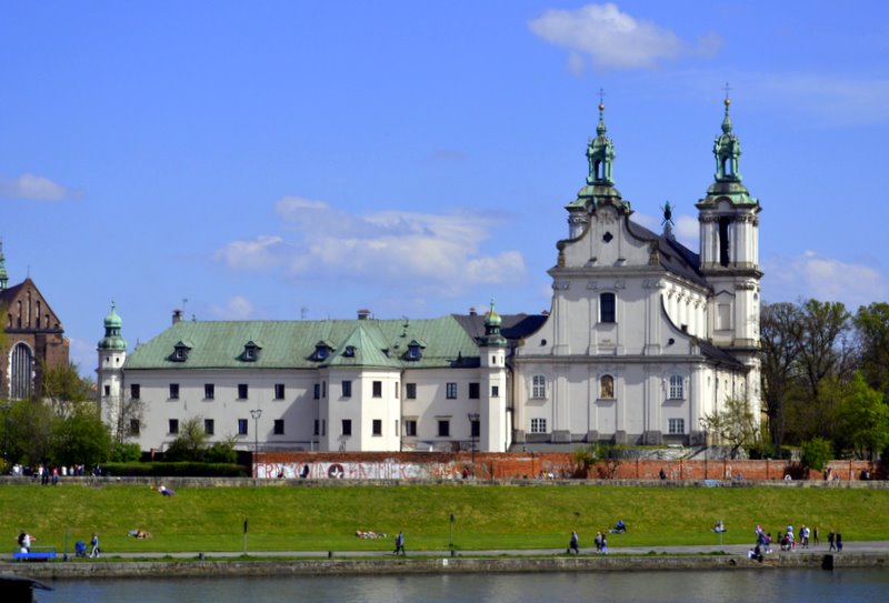 Jest to pierwsza budowla architektury barokowej w Krakowie. Ufundowany został przez króla Zygmunta III Wazę. W kościele jest zawieszone najdłuższe w Polsce wahadło Foucaulta (46,5 m). Co czwartek odbywają się demonstracje, pozwalające zaobserwować (pośrednio) ruch obrotowy Ziemi wokół własnej osi. Pokazy wahadła Foucault’a odbywają się w każdy czwartek o godz. 10.00, 11.00 oraz 12.00.