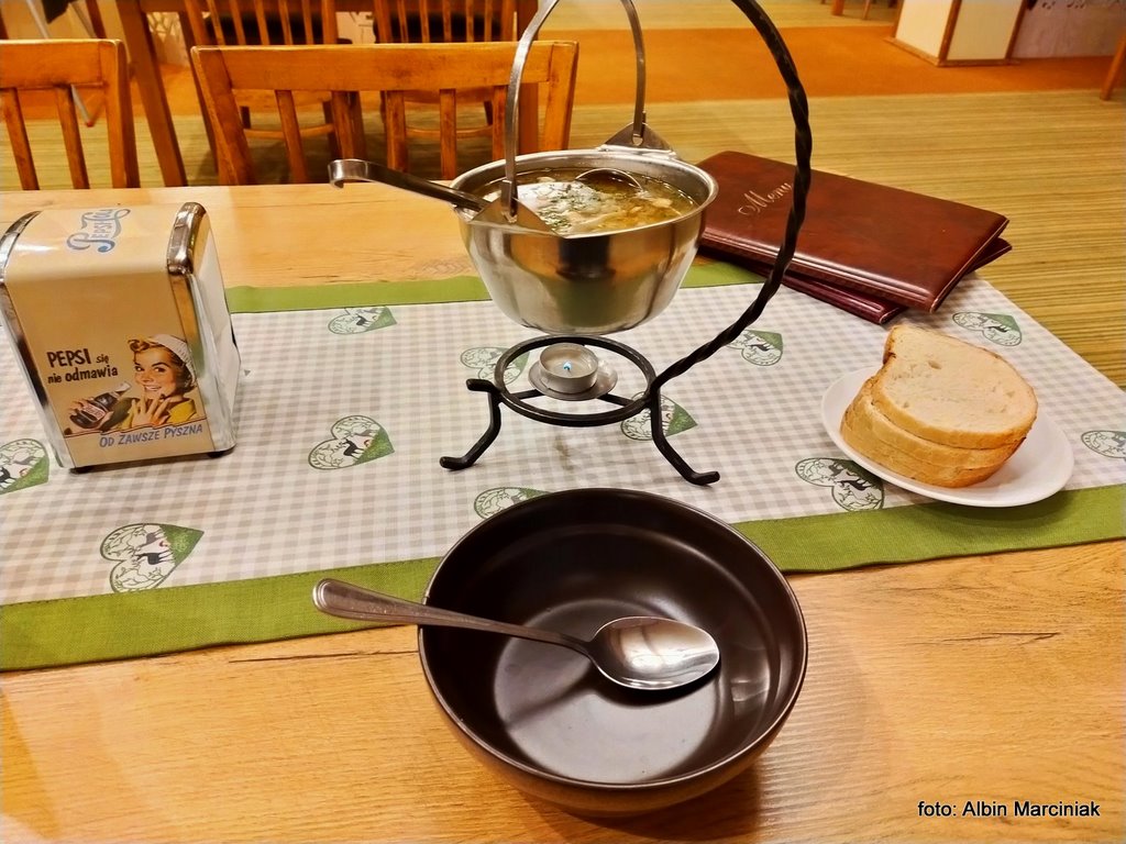 W hotelu górskim na Kalatówkach warto zamówić kwaśnicę. Podawana jest w kociołku z podgrzewaczem i jest naprawdę pyszna. Mimo że nie jest to schronisko a hotel górski, to jednak coraz chętniej zatrzymuję się tutaj, mając w planie wczesne wyruszenie na szlaki Tatr Zachodnich. Mimo że nie ma typowej kuchni turystycznej dostępnej dla wczesnoporannych górołazów, to jednak na każdym piętrze jest do dyspozycji czajnik. Zamiast śniadania wliczonego w cenę noclegu, można poprosić o suchy prowiant wydawany już po kolacji.