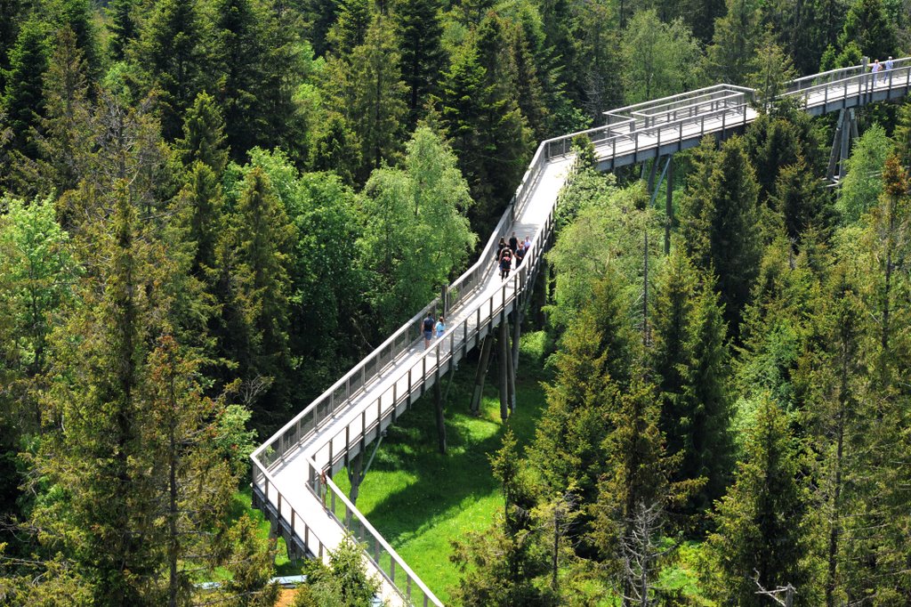 600 metrowej długości ścieżka osadzona na specjalnych filarach, wije się między drzewami na wysokości odchodzącej do 24 metrów. Kolejny odcinek 630 metrowej trasy wije się 32-metrową spiralną wieżą widokową. Daje to w sumie 1234 m spaceru ponad drzewami. Konstrukcja wspierana jest przez 120 podpór. Szerokość ścieżki to 180 cm. Do budowy użyto 1000m3 drewna. Na trasie zbudowane zostały 3 punkty dydaktyczne oraz 3 punkty z atrakcjami.