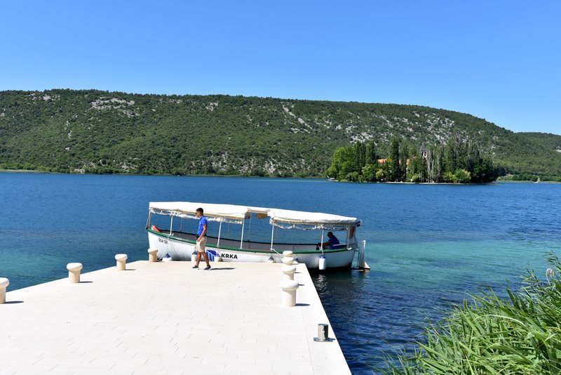 Korzystając z łodzi wycieczkowych Park Narodowy Krka. Można dotrzeć do wysepki Visovac z lewego lub prawego brzegu (Stinice lub Remetić). Rejs łodzią trwa około pięciu minut.