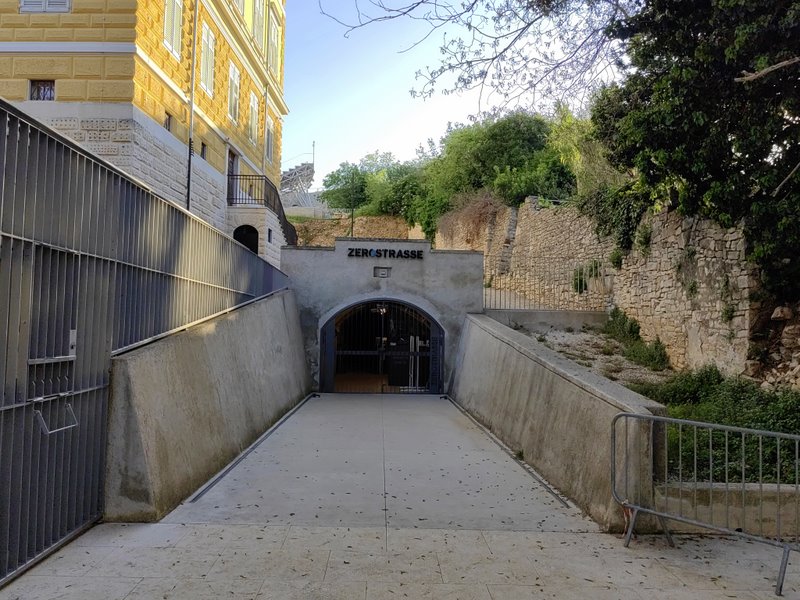 Zerostrasse znajduje się pod wzgórzem Kaštel, na którym stoi twierdza Kastel – centrum historycznym Puli. Wejście do tuneli znajduje się u podnóża twierdzy, przy ul. Carrarina (niedaleko muzeum archeologicznego).