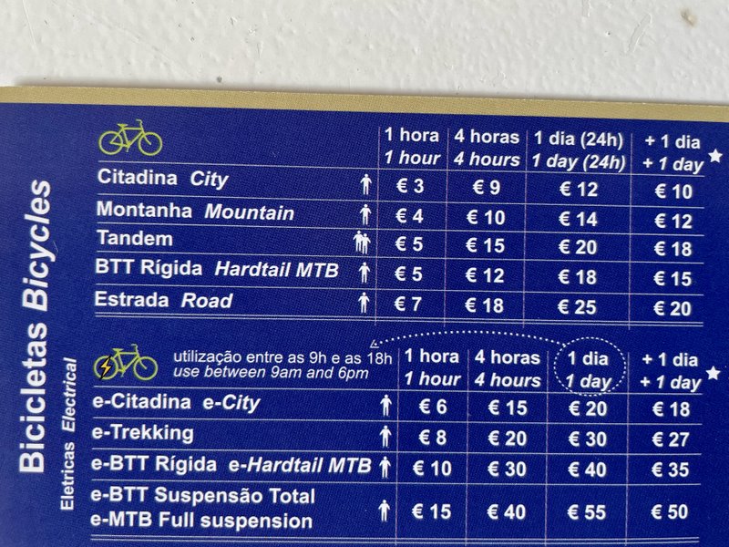 Jedynym dużym skupiskiem mieszkańców na Porto Santo jest miasteczko Vila Baleira. Tam najlepiej wypożyczyć rower. Ja skorzystałem z AAColombo (www.aacolombo.com), które ma ich duży ich wybór i oferuje profesjonalne wsparcie w zaplanowaniu tras. Ceny zaczynają się od 3 eur za godzinne użyczenie miejskiego roweru. Ja zdecydowałem się na elektryczny MTB „full suspension”, którego cena cennikowa to 55eur za dzień (pożyczenie o 9.00, zwrot 18.00). Można także wypożyczyć foteliki rowerowe, co ułatwia takie podróżowanie z dziećmi.
