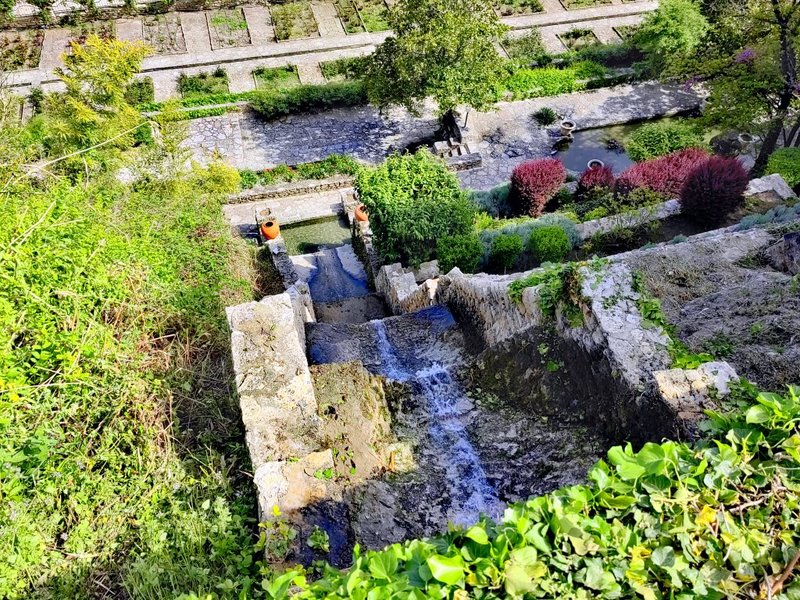 W okolicy wodospadu znajduje się jedno z kilku wyjść z terenu ogrodów. Zejście prowadzi na plażę i dalej alejkami w rejon parkingu i centrum miasta. Także tutaj znajduje się restauracja gdzie warto zatrzymać się na obiad czy choćby coś do picia.