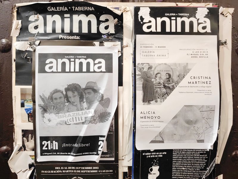 Miejsce istnieje od prawie 40 lat i jest nieformalnym matecznikiem wspierającym sztukę i artystów w Sewilli. Środowe i piątkowe jam session flamenco są żywiołowe i całkowicie improwizowane. Są także inne, planowane i zapowiadane już pokazy oraz zmieniające się wystawy na ścianach. Peter właściciel jest bardzo przyjazny i otwarty na wszystko co jest związane ze sztuką i muzyka. Co pewien czas Peter powtarza że przechodzi na emeryturę i zamyka bar w przyszłym roku, ale tak się dzieje od lat. Można mieć nadzieję że jego syn poprowadzi Ánima przez kolejne 40 lat.