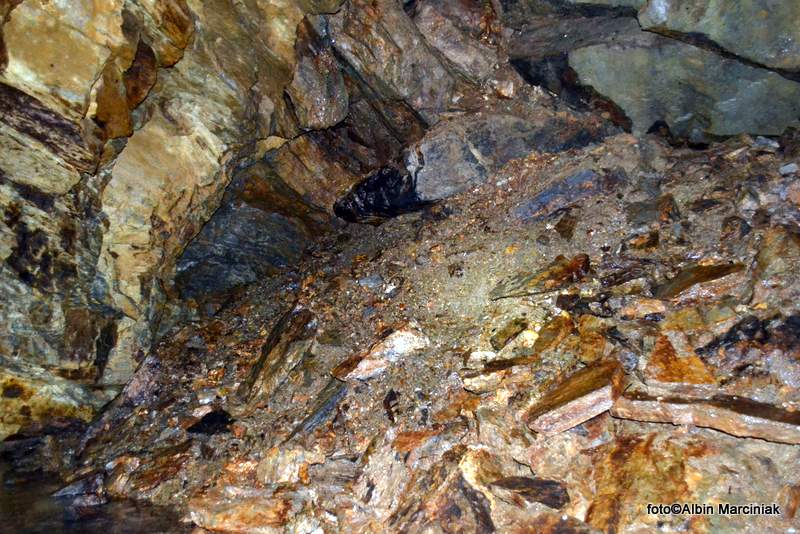 Mijamy kolejny zawał. Wiele wskazuje że może to być przejście do nieznanych części podziemi. Spore bloki skalne, lejąca się woda i osuwisko. Bardzo utrudnione i niebezpieczne było by kopanie w tym miejscu