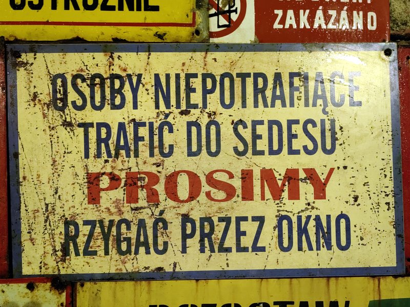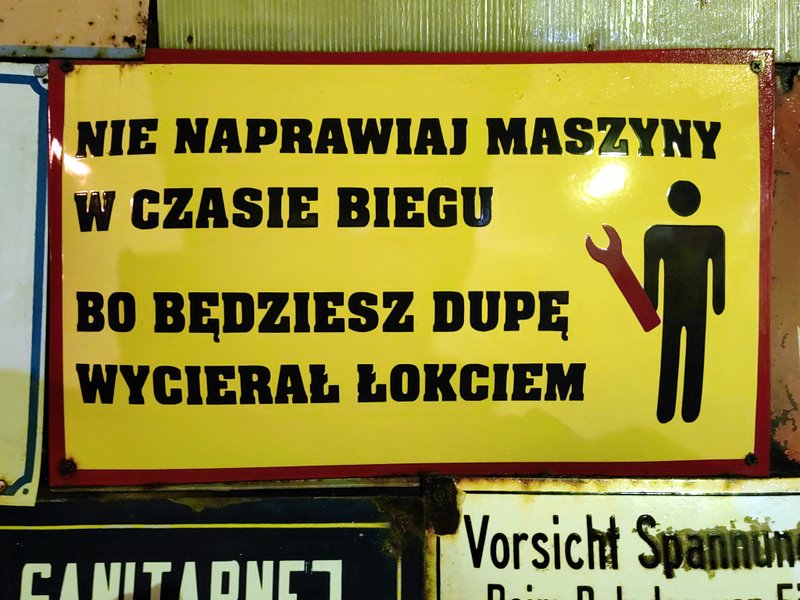 Kolekcja tablic ostrzegawczych i informacyjnych, związanych głównie z przepisami BHP uwieczniających najróżniejsze hasła, instrukcje i ostrzeżenia. Często są to hasła wręcz zabawne, typu: „Nie rzucaj młotkiem, będąc na rusztowaniu” lub bardziej ambitne „Co zrobiłeś dzisiaj dla obniżenia kosztów własnych?”. Nie brakuje tablic z tekstami wręcz kultowymi, jak np "Walim na żądanie" a jest to tabliczka z przystanku PKS na żądanie w Walimiu. Zwiedzając kopalnię z przewodnikiem, nie sposób wczytać się we wszystkie tablice, stąd dla ułatwienia poniższa galeria najciekawszych z nich.