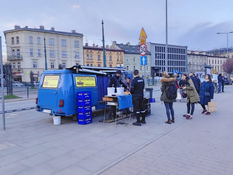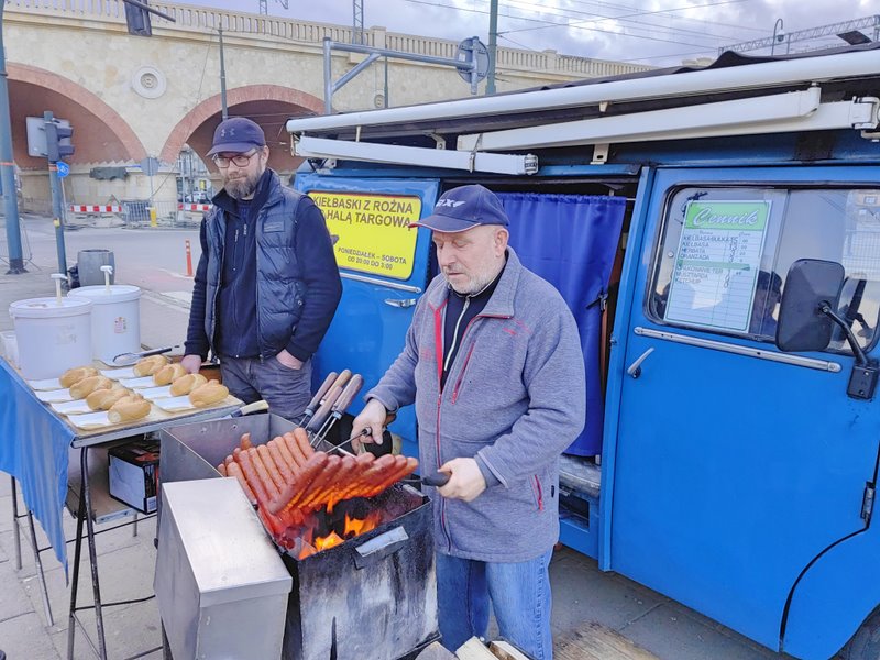 Legendarne krakowskie kiełbaski z niebieskiej nyski spod Hali Targowej