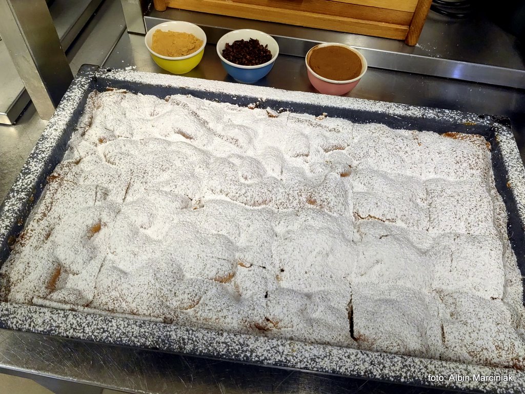 Wielkie ciastowe kule czekały na rozwałkowywanie a my, maluchy, czekałyśmy by podkradać słodkawe okrajki, które zawsze pozostawały po rozłożeniu ciasta na olbrzymich blachach. Jeszcze dzisiaj, kiedy piecze się szarlotka na Ornaku, podkradam słodkie surowe ciasto by przywołać te dziecięce, beztroskie chwile.