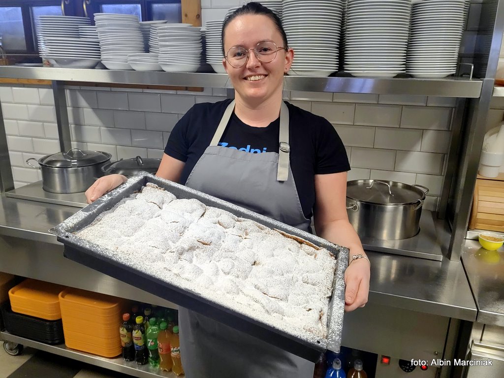 No dobra. Tak wychwalam to miejsce i szarlotkę, więc może czas na konkrety, kto, co, jak i dlaczego, by wyjaśnić wyjątkowość tego ciasta. Jak dowiedziałem się w schroniskowej kuchni, do wypieku szarlotki nie są dopuszczani wszyscy a jedynie wybrańcy, gdzie poza doskonałą znajomością receptury mają także pasję i to coś... Przez ostatnie 10 lat szarlotkę przygotowywała i wypiekała Natalia Talar.