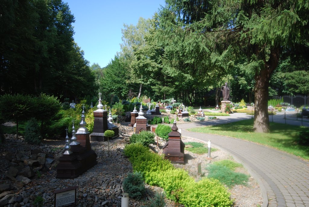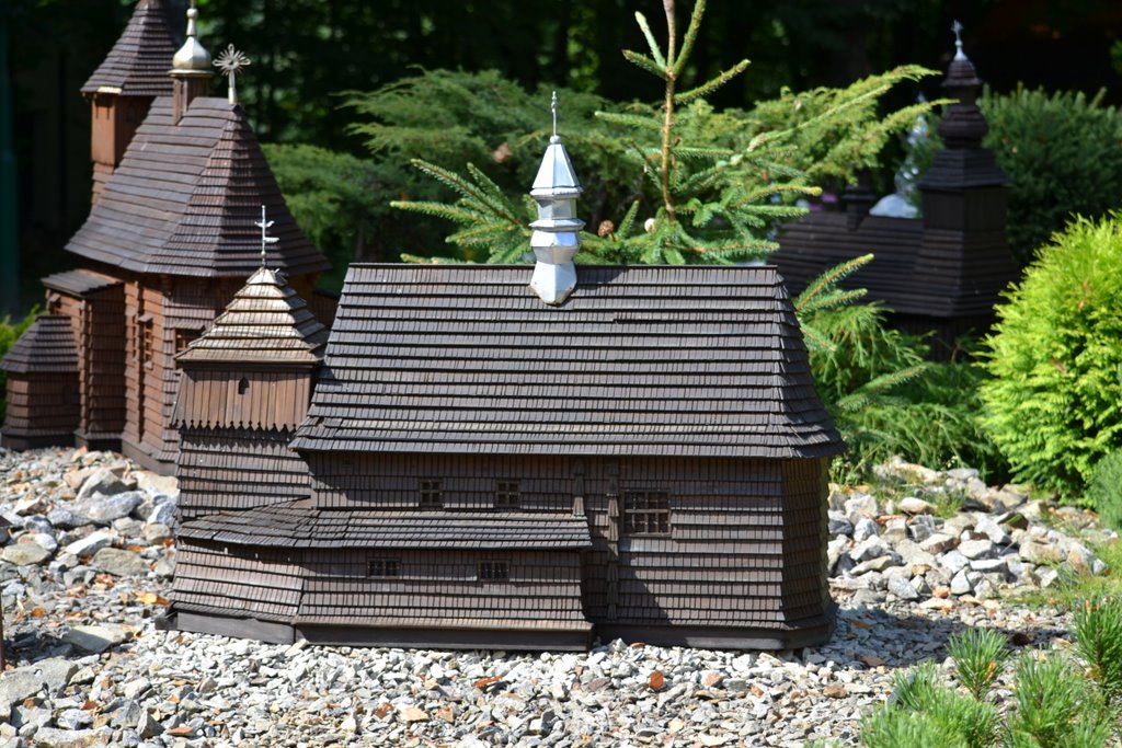 Na obszarze ok. 0,8 ha, na 10 wzgórzach, zostało ustawionych 140 makiet w skali 1 : 25 najstarszych drewnianych kościołów rzymsko - katolickich, cerkwi prawosławnych, greckokatolickich, z terenu południowo – wschodniej Polski, Słowacji i Ukrainy.