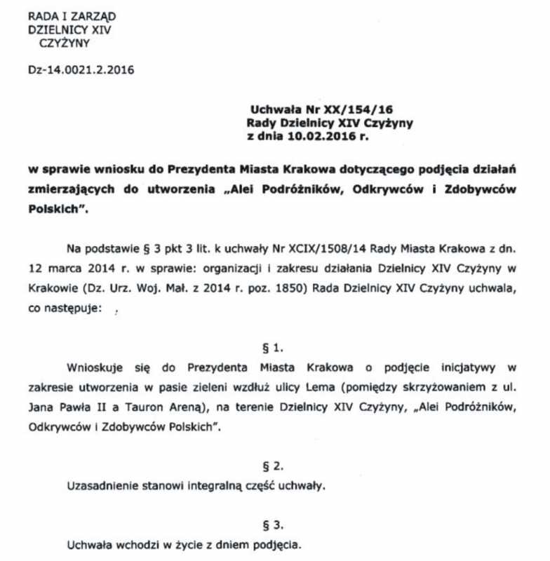 alei Lema w Krakowie, pt.: Aleja Podróżników, Odkrywców i Zdobywców