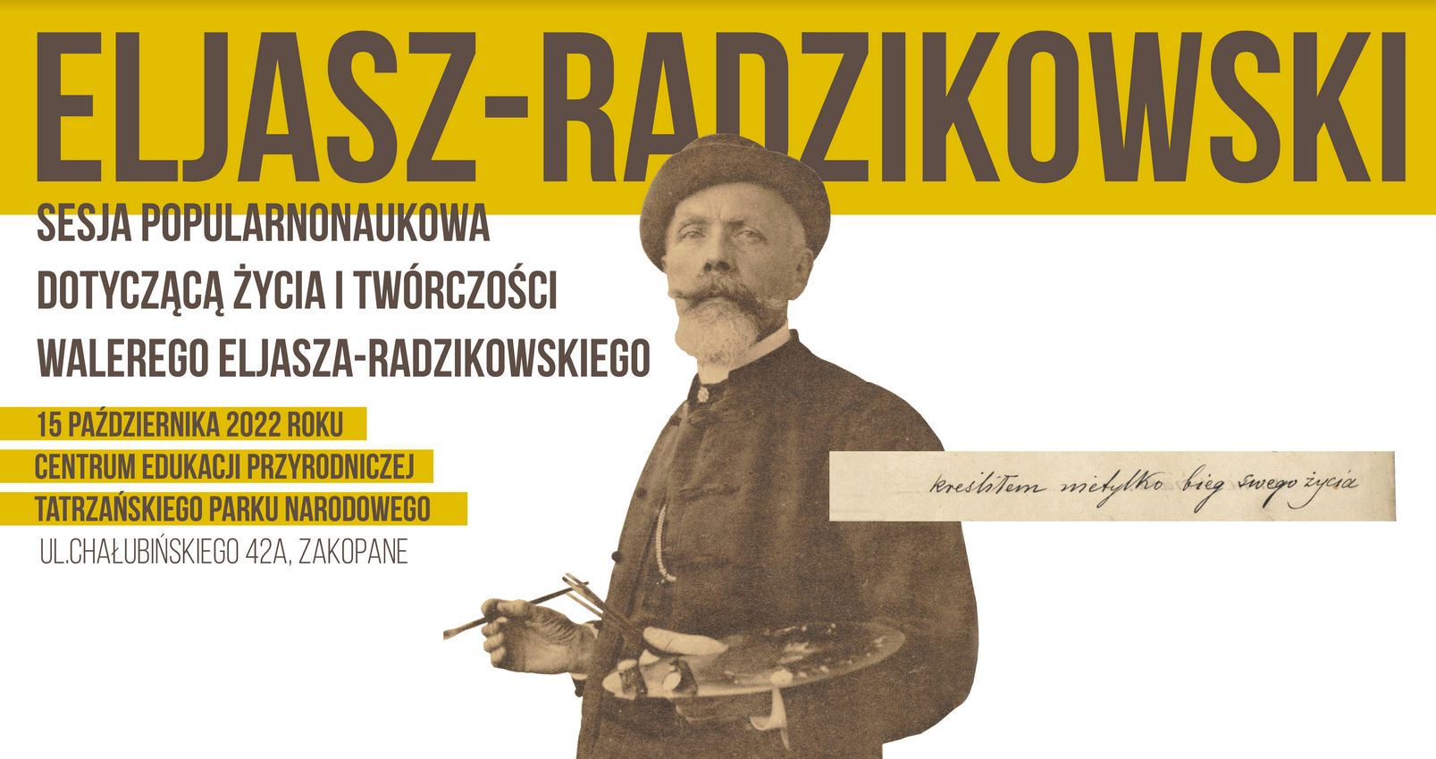 15 października w Centrum Edukacji Przyrodniczej TPN (ul. Chałubińskiego 42a, w Zakopanem) odbędzie się sesja popularnonaukowa poświęcona życiu Walerego Eljasza-Radzikowskiego. Rozpoczęcie o godzinie 9.00.