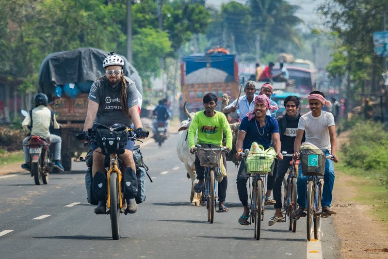 Na szczęście wypadek nie skutkował poważniejszymi obrażeniami niż potłuczenia. Ucierpiał jednak rower, w którym pękła opona i skrzywiła się rura sterowa. Dzięki pomocy napotkanych na miejscu ludzi, udało się dokonać niezbędnych napraw i kontynuować jazdę przez Indie, w których następnego dnia akurat odbywało się święto Holi – słynny festiwal kolorów. Rzadko odwiedzany przez turystów Jharkhand, który budził obawy ze względu na działającą w tej prowincji partyzantkę maoistyczną Naxal, zdarzające się napady, a nawet porwania, mimo że pechowy, okazał się życzliwy i pomocny.