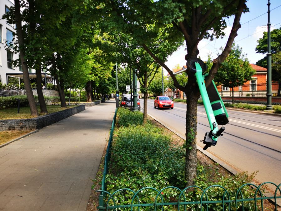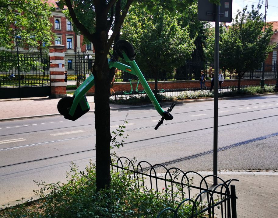 Obecne rozwiązania niestety niewiele dają, bo hulajnogi pozostawiane są absolutnie wszędzie i na nic umowy czy regulaminy. Zgłaszanie na maila także jest marginalnym rozwiązaniem, bo niewiele osób spieszących się do pracy czy do środka komunikacji zbiorowej przejdzie obok takiej przeszkody, a problem pozostanie dla kolejnych osób. Bywa że takie przeszkody lądują w krzakach czy w rzekach a nawet na drzewach.