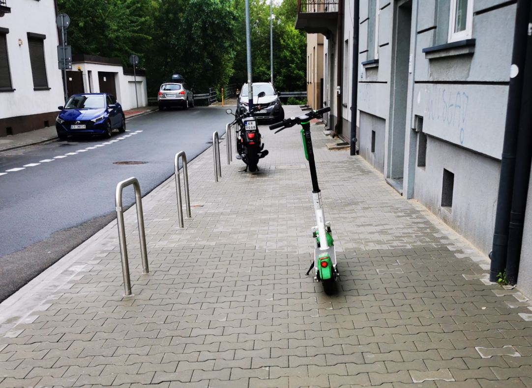 Niestety, problem z ustawianiem hulajnóg na środku chodnika stwarzają także same firmy. Wielokrotnie widziałem takie praktyki w drodze na pociąg. Wczesna pora gdy na ulicach jest pusto, serwisant sprawdza poziom baterii i w momencie zamiany, ustawia hulajnogi tak, by ich nie przeoczyć. Ul. Rakowicka aż do Dworca Głównego często bywa torem przeszkód. Studenci pobliskiej uczelni także dokładają swoje "trzy grosze". Poniższa galeria pokazuje skalę problemu.