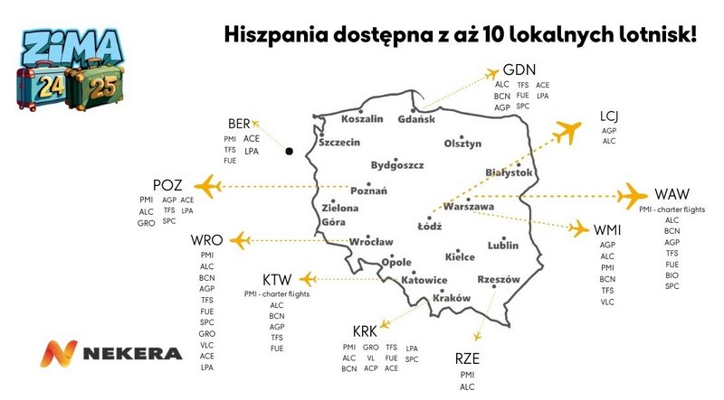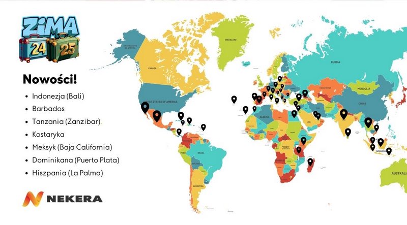 Na nowy sezon zimowy Nekera przygotowała wiele nowości, ale również wyjazdy do krajów, miejsc i hoteli, które od lat cieszą się popularnością. Oprócz bogatej oferty lotniczej, w tym do egzotycznych destynacji, proponuje również najszerszą na rynku polskim ofertę narciarską. Łącznie na program Zima 24/25 składa się 51 państw i aż 161 kierunków wakacyjnych.