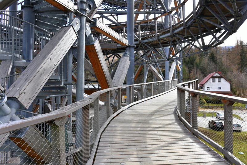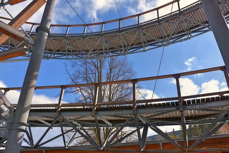 Konstrukcja Podniebnego Spaceru, jak nazywana jest ścieżka wijąca się na wieży, wykonana jest ze stali ocynkowanej ogniowo i dodatkowo obłożona jest drewnem modrzewiowym. Główną podporą nośną wieży jest konstrukcja stalowa kratownicowa, która składa się z trzech trójkątnych wież, połączonych strukturą pozioma. Wszystkie trzy wieże rozmieszczone są na planie trójkąta, o bokach 26-38 m. Trasa o długości 850 m wije się wokół trzech wież nośnych, i kończy się punktem widokowym na wysokości 62 m nad otaczającym terenem. Sky Walk oferuje kilka dodatkowych atrakcji - siatka do wspinaczki, zjeżdżalnia, przeszklony taras i siatka do odpoczynku na szczycie wieży.