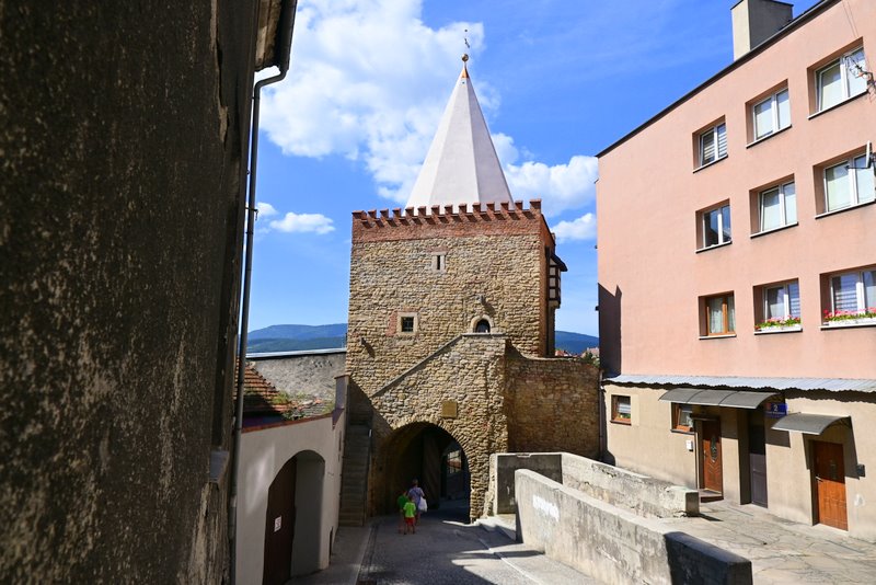 Brama Wodna to jeden z symboli miasta. Wzniesiona w XIV wieku, w 1508 roku została nadbudowana wieżą z krenelażem i ceglanym hełmem. W przeszłości zamykana była opuszczaną kratą, a w jej wnętrzu pobierano opłaty za wjazd do miasta. Po renowacji udostępniono w niej makietę historyczną Bystrzycy, lunety widokowe i ekspozycję dokumentów.