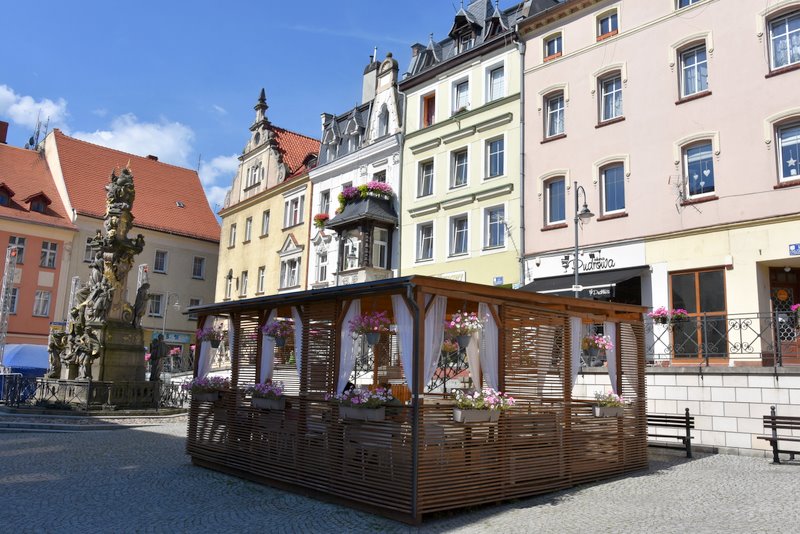 Choć miasto słynie głównie z zabytków i malowniczych widoków, to także tutaj można dobrze i smacznie zjeść. Jednym z ulubionych adresów mieszkańców i turystów jest Bar Kaktus – niepozorny lokal przy bocznej uliczce obok rynku. Za cenę popularnego kebaba można tu dostać solidny, domowy obiad w przyjemnej atmosferze. A jeśli ktoś woli słodsze klimaty, idealnym miejscem będzie kawiarniany ogródek na rynku, tuż przy barokowym pomniku Trójcy Świętej – świetne miejsce na filiżankę kawy i kawałek ciasta z widokiem na serce miasta.