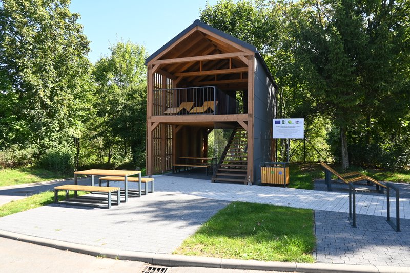 W Złotym Stoku, opodal rynku znajduje się innowacyjna infrastruktura dla rowerzystów chcących wypocząć. To dwukondygnacyjna wiata wypoczynkowa z możliwością nocowania,