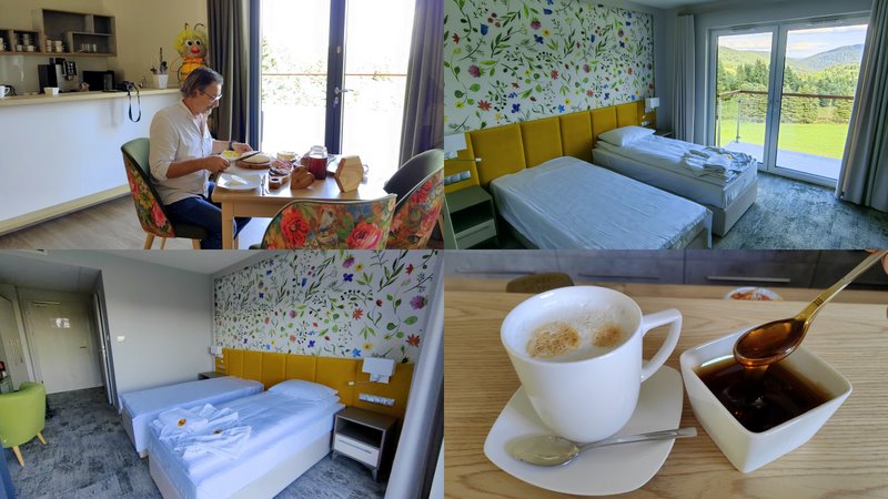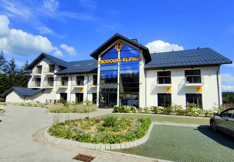 Mimo iż uroczyste otwarcie odbyło się 20 czerwca tego roku, na oficjalne trzeba było poczekać kilkanaście dni. Co prawda już bez kwiatów i orkiestry, ale miałem tę przyjemność że byłem pierwszym, historycznym pacjentem Miodowej Kliniki. Nie, nie ma tutaj pomyłki bo nie klientem a właśnie pacjentem stałem się od momentu wejścia do obiektu. Po zameldowaniu i rozgoszczeniu się w pokoju (z pięknym widokiem na Beskid Sądecki) oddałem się przyjemnościom jakie czekają tutaj na gości.