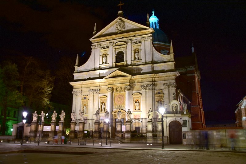 Jest to pierwsza budowla architektury barokowej w Krakowie. Ufundowany został przez króla Zygmunta III Wazę. W kościele jest zawieszone najdłuższe w Polsce wahadło Foucaulta (46,5 m). Co czwartek odbywają się demonstracje, pozwalające zaobserwować (pośrednio) ruch obrotowy Ziemi wokół własnej osi. Pokazy wahadła Foucault’a odbywają się w każdy czwartek o godz. 10.00, 11.00 oraz 12.00.