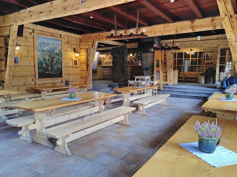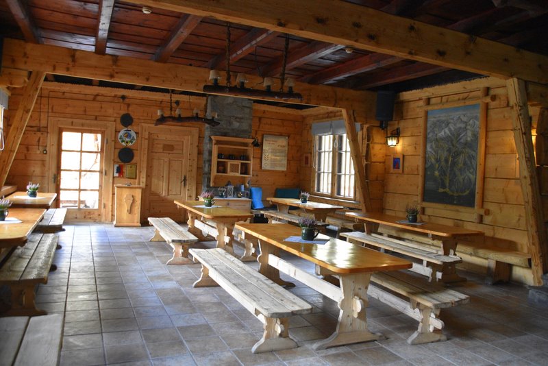 W parterowej części schroniska znajduje się drewniana sala jadalna, bufet, recepcja oraz kuchnia połączona z wydawaniem posiłków. Kominek rozpalany drewnem obok stylizowany barek, który swoistym klimatem pomoże turystom poczuć niezwykły nastrój, klimat i dzieje dawnej Doliny Kościeliskiej, kopalni srebra i rudy metali oraz poszukiwaczy skarbów. Goście mogą skorzystać z przestrzennej sali wypoczynkowej z biblioteczką. Do ich dyspozycji w podziemiach schroniska przygotowana została kuchnia turystyczna oraz suszarnia na mokrą odzież. Tutaj też znajdują się łazienki z natryskami.