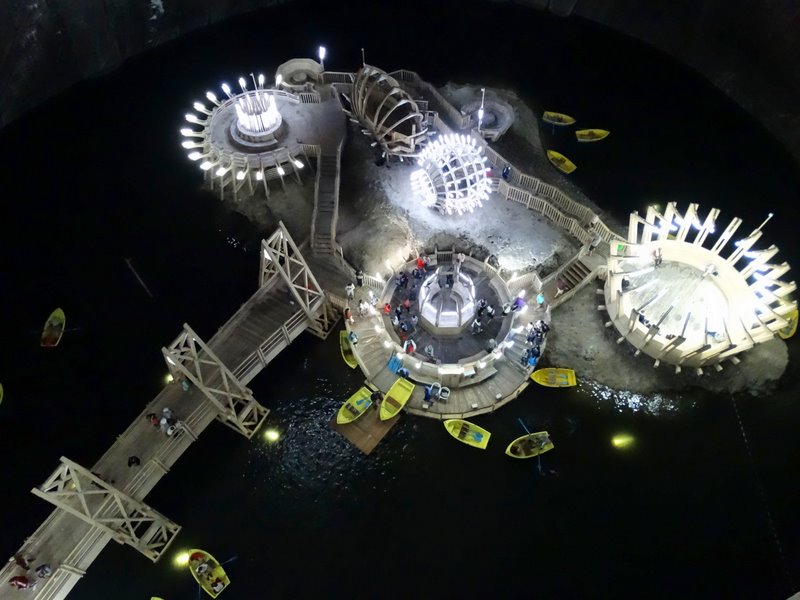 W części kopalni udostępnionej do zwiedzania poruszamy się po 3 poziomach: trzy szyby: Terezia (z najgłębszym punktem – 120 m), Anton (108 m) i Rudolf (42 m). Do dyspozycji są schody oraz winda. Wszystkie atrakcje udostępnione na dole są płatne osobno, w tym łódki (20 lei za 20 minut dla 3 osób), diabelskie koło, stoły do ping ponga i bilarda, mini golf, itp.