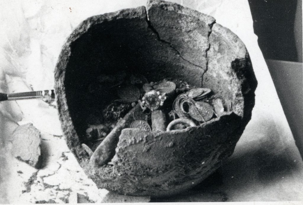 Skarb znaleziony został w Žatcu (północno-zachodnie Czechy) w 1937 roku. „Unikatowy skarb miał w swoim czasie ogromną wartość. Stanowił równowartość około 2700 denarów i odpowiadał na przykład cenie dziewięciu niewolników. Za tę ogromną cenę można było kupić na praskim targu 27 tysięcy kurczaków lub pszenicę na chleb, który wystarczyłby dla jednego człowieka na dwieście lat”, poinformował Luboš Polanský z Muzeum Narodowego w Pradze. Przypuszcza się, że właścicielem skarbu był ktoś z najbliższego otoczenia czeskiego księcia Jaromira z dynastii Przemyślidów.