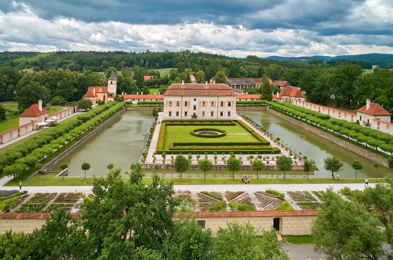 Pałac Kratochvíle, położony niedaleko Prachatic, to jeszcze jedna perła renesansowej architektury w regionie. Choć mniej znany niż inne pałace, zachwyca swoją elegancją i historycznym charakterem. Myśliwski pałacyk letni w stylu willi włoskiej, otoczony fosą i renesansowym ogrodem, został zbudowany przez Wilhelma z Rožmberka pod koniec XVI wieku. Na gości czekają oryginalne renesansowe wnętrza z manierystycznymi malowidłami i bogatą dekoracją sztukatorską. Warto zobaczyć także kaplicę Narodzenia Najświętszej Marii Panny, której wieża odbiega nieco od osi pionowej.