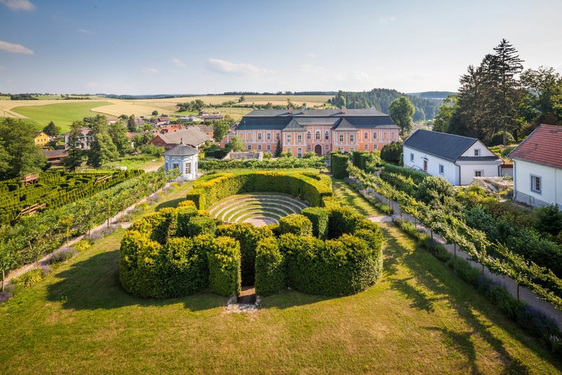 W parku przy pałacu Nové Hrady w Czechach Wschodnich znajduje się piękny bukszpanowy labirynt w stylu francuskim. Eleganckie i symetryczne ścieżki prowadzą do centralnego punktu. Park jest również pełen pięknych ogrodów i fontann.