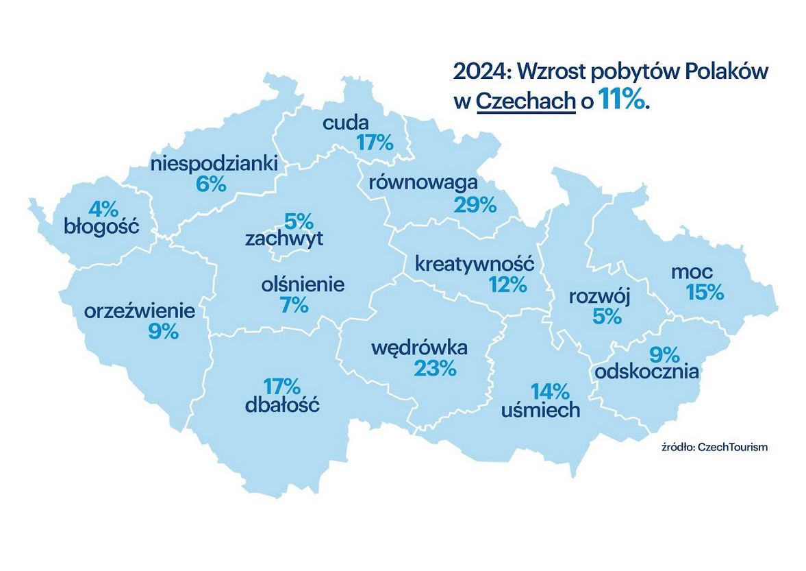 Bardzo nas cieszy, że Polacy coraz chętniej odwiedzają Czechy i odkrywają ich różnorodność. Nasze kraje świetnie się uzupełniają – oferujemy wspaniałe zabytki, doskonałe wino, przepiękne góry z rozwiniętą infrastrukturą do turystyki pieszej i rowerowej oraz miejsca, które dla Polaków mogą być zupełnie inne, a nawet egzotyczne - mówi Tomáš Zukal, dyrektor polskiego przedstawicielstwa CzechTourism. My, Czesi, zakochaliśmy się w Polsce, a Polacy są u nas niezwykle mile widziani i doceniani. Coraz więcej atrakcji, zabytków oraz punktów usługowych oferuje informacje w języku polskim.