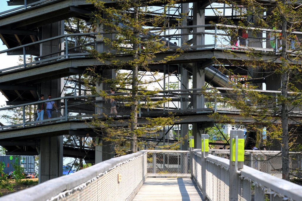 600 metrowej długości ścieżka osadzona na specjalnych filarach, wije się między drzewami na wysokości odchodzącej do 24 metrów. Kolejny odcinek 630 metrowej trasy wije się 32-metrową spiralną wieżą widokową. Daje to w sumie 1234 m spaceru ponad drzewami. Konstrukcja wspierana jest przez 120 podpór. Szerokość ścieżki to 180 cm. Do budowy użyto 1000m3 drewna. Na trasie zbudowane zostały 3 punkty dydaktyczne oraz 3 punkty z atrakcjami.