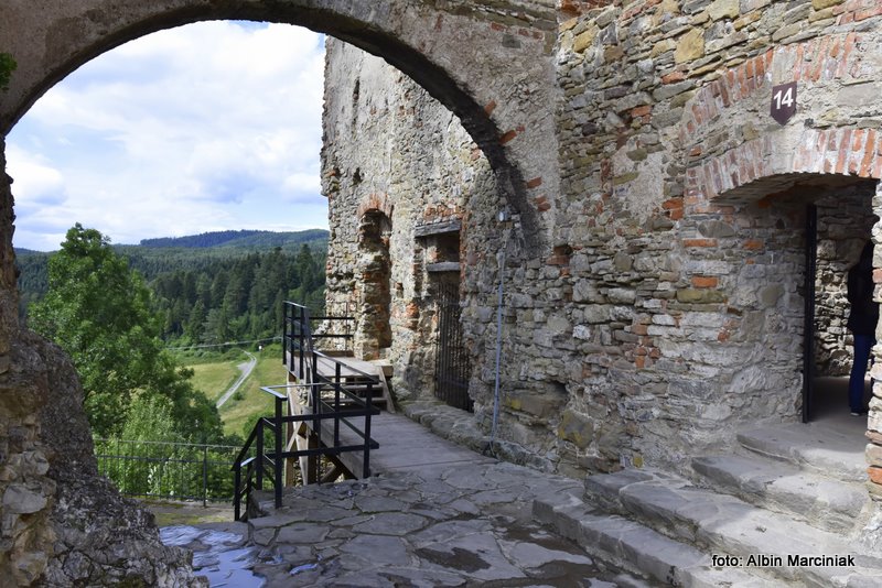 Odbudowany w XVII wieku XIII-wieczny zamek usytuowany niedaleko granicy z Polską.