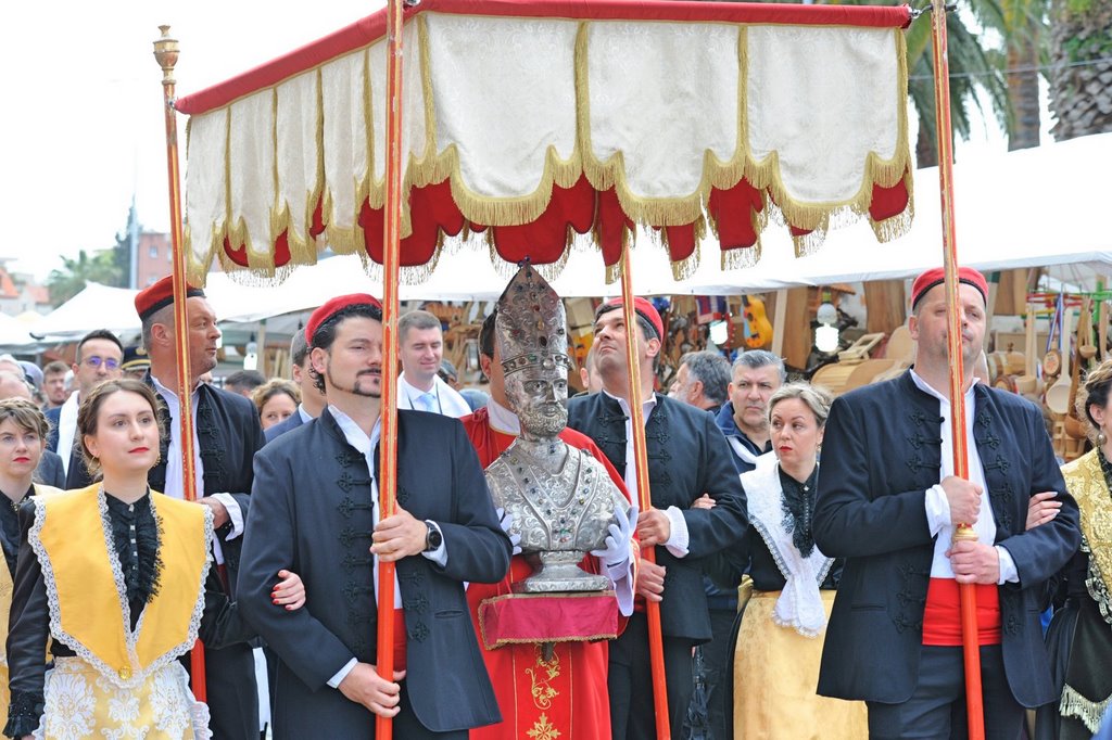 Z tej właśnie katedry, co roku, w uroczystej procesji wynoszony jest relikwiarz patrona miasta i w uroczystej procesji obnoszony ulicami miasta. Bez względu, w który dzień tygodnia święto wypadnie, zawsze ten dzień jest dniem wolnym od pracy. W tym roku możecie odwiedzić Split i uroczystości zobaczyć na żywo!