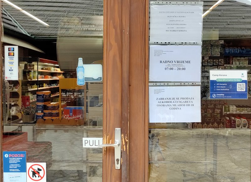 sklep na terenie kempingu znajduje się obok recepcji i kawiarni