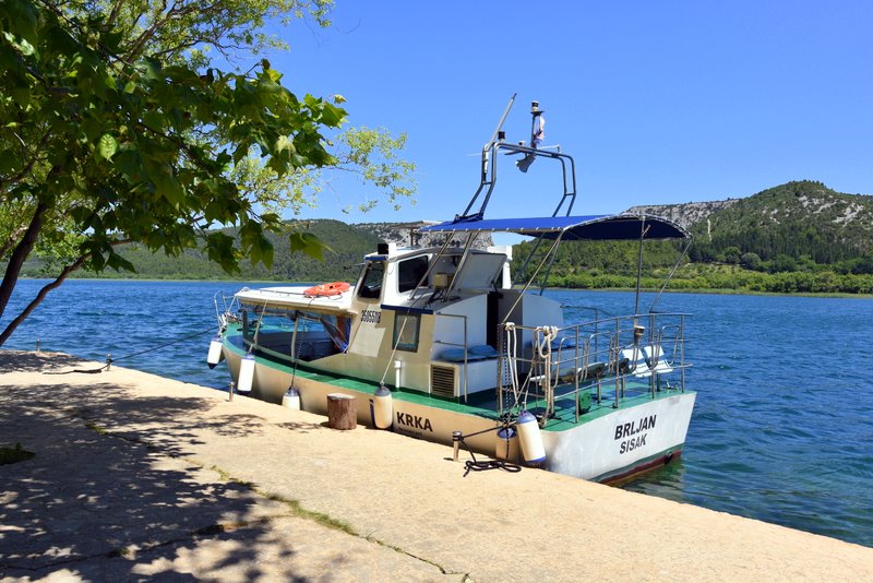 Korzystając z łodzi wycieczkowych Park Narodowy Krka. Można dotrzeć do wysepki Visovac z lewego lub prawego brzegu (Stinice lub Remetić). Rejs łodzią trwa około pięciu minut.