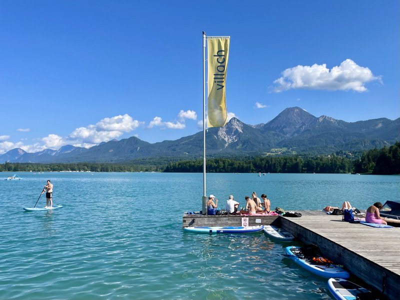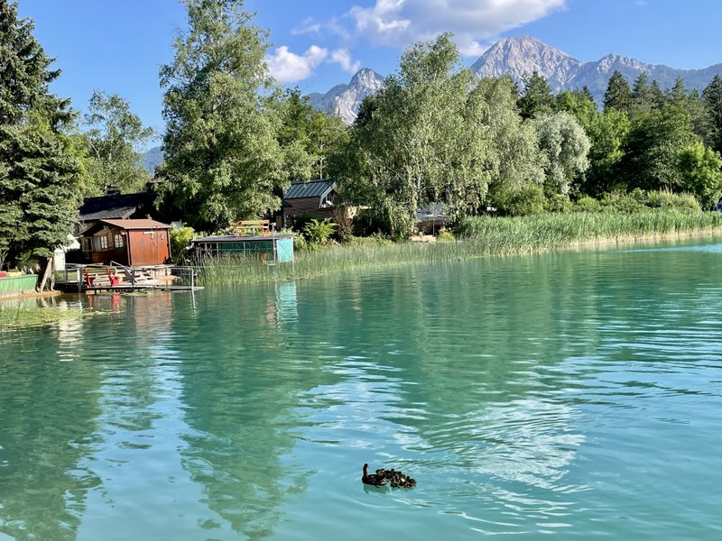 Przykładową trasą – jedną z najkrótszych – jest trasa wokół jeziora Faaker See. Ma tylko 10 km i idealnie nadaje się na „rozgrzewkę” lub rodzinną przejażdżkę przed podjęciem kolejnych rowerowych wyzwań. Mimo, że trasa jest tak krótka to jej zróżnicowanie zaskakuje. Jedziemy po asfalcie, po leśnych ścieżkach lub przez łąki, raz po raz, zbliżając się lub oddalając od jeziora. Czasami trafiamy na dzikie plaże, a innym razem na gwarne kąpieliska z pełną infrastrukturą.