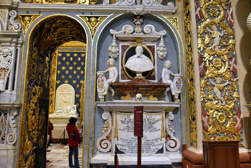W krypcie spoczywają w sarkofagach szczątki wielkich mistrzów Zakonu Maltańskiego, którzy przez wieki odgrywali kluczową rolę w historii Malty i zakonu. W czterech wnękach krypty znajdują się groby najwybitniejszych postaci, co czyni to miejsce swoistym mauzoleum zakonu.