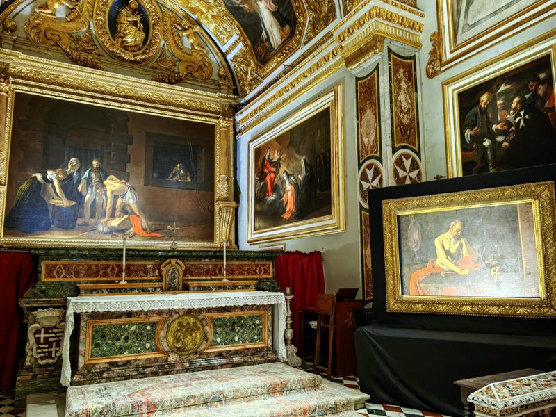 Konkatedra słynie również z dzieł sztuki, w tym obrazów Caravaggia, z których najważniejsze to „Ścięcie św. Jana Chrzciciela” – jedyne sygnowane dzieło mistrza, oraz „Święty Hieronim piszący”. Obrazy te można podziwiać w oratorium, które w 2021 roku przeszło gruntowną renowację.