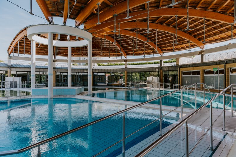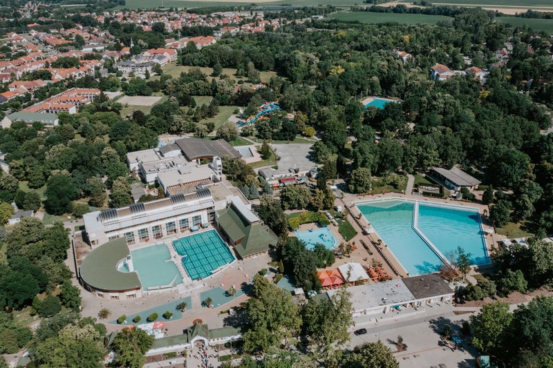 Drugi co do wielkości kompleks kąpielowy na Węgrzech obejmuje 34 baseny i ponad 5000 metrów kwadratowych powierzchni wody. W uzdrowisku znajdują się baseny lecznicze i rozrywkowe, nowoczesne sauny i centrum odnowy biologicznej, a także renomowany dział terapeutyczny dla tych, którzy przyjeżdżają tu w celu relaksu.