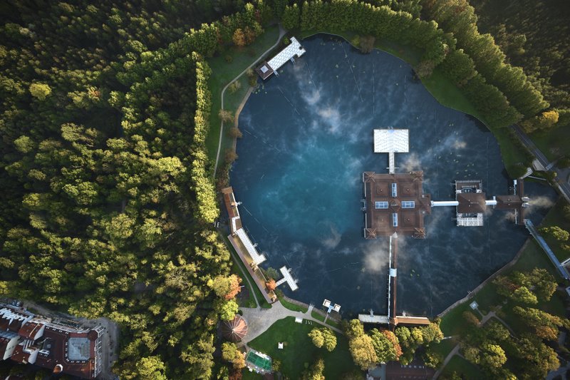 Jezioro Hévíz to największe jezioro termalne Europy. Rozwój współczesnej kultury kąpielowej rozpoczął się w XVIII wieku, gdy region ten stał się domeną słynnego rodu Festeticsów, a hrabia György Festetics zbudował łaźnię na tratwach. Jezioro sięga głębokości 38 metrów, a jego woda jest naturalnie wymieniana co 3,5 dnia. Jezioro o owalnym kształcie zasilane jest zarówno źródłami ciepłej, jak i zimnej wody, dlatego jego temperatura w lecie waha się w granicach 33-38 stopni Celsjusza i nawet zimą nigdy nie spada poniżej 22–23 stopni Celsjusza, dzięki czemu odwiedzający mogą pływać w jeziorze na świeżym powietrzu nawet w najcięższych warunkach atmosferycznych.
