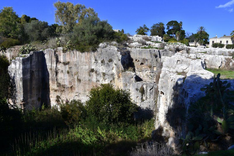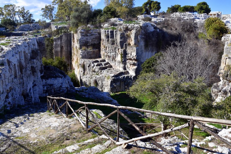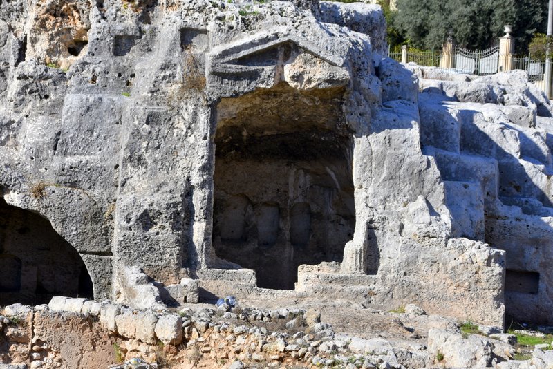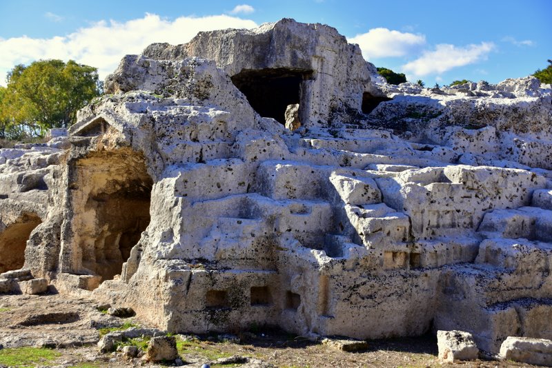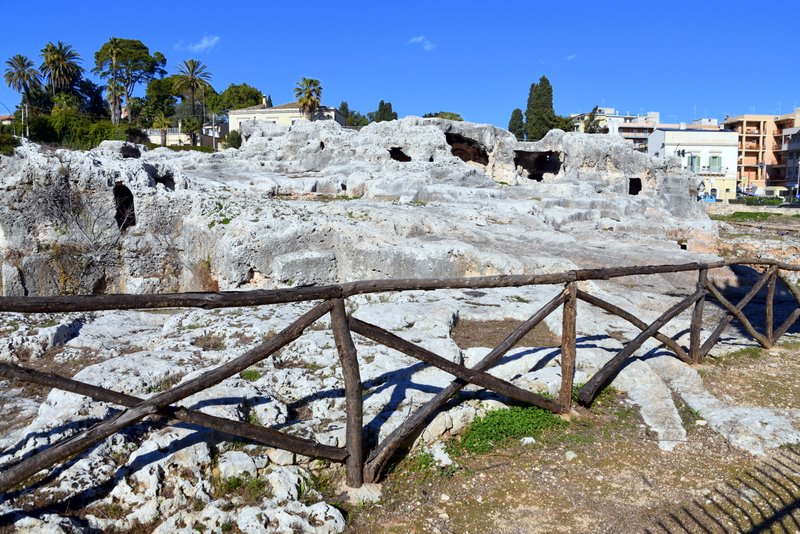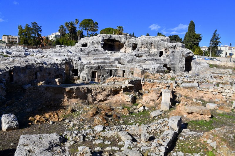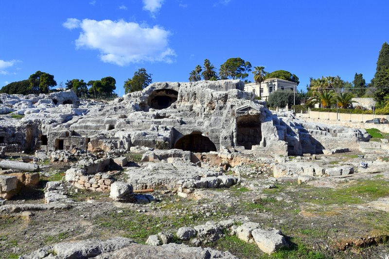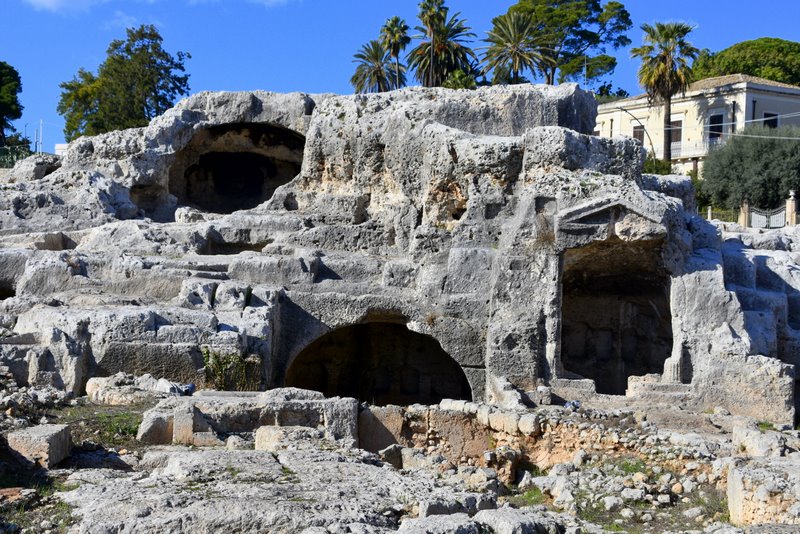 Obszar ten nazywany jest „Nekropolią Grotticelle” i charakteryzuje się obecnością licznych pochówków zarówno z okresu sycylijskiego, greckiego, jak i rzymskiego. Pierwsze dwa mają kształt „wgłębień”, natomiast trzeci jest „komorowy”. Wśród tych ostatnich szczególnie rzuca się w oczy ten, którego wejście zdobi wykuty w skale tympanon. Doprowadziło to do równania: piękniejszy grób = najważniejszy w Syrakuzach… a zatem musiał należeć do Archimedesa. Ale to tylko legenda, bo miejsce prawdziwego pochówku nie jest znane.