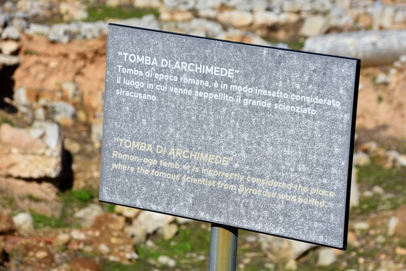 Rzekomy grób Archimedesa w Syrakuzach na Sycylii jest jednym z wielu a jest to to pozostałość po nekropoli okresu antycznego. Zabytkowe katakumby wykute w rodzimym piaskowcu zachowane są w dość dobrym stanie.