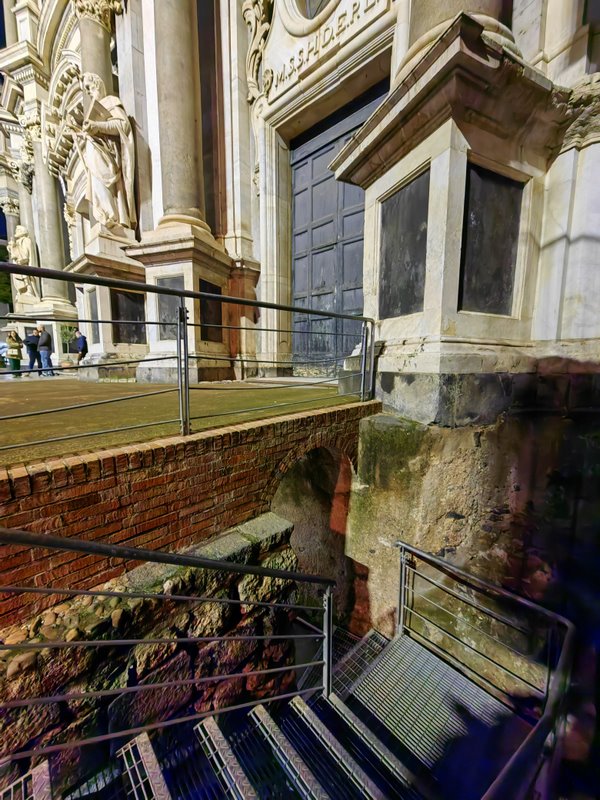 W zachodniej części kompleksu, można zobaczyć płynącą rzekę, natomiast w tej niestety niedostępnej dla zwiedzających części budynku, znajdują się podstawy słynnej fontanny Słonia stojącej na placu Piazza del Duomo. Na ścianach i sklepieniach pozostała także niewielka część dekoracji sztukatorskich.
