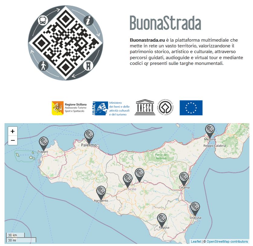 Buonastrada, bo tak nazywa się aplikacja, to multimedialna platforma łącząca rozległe terytorium największej wyspy na Morzu Śródziemnym, wzbogacająca jego dziedzictwo historyczne, artystyczne i kulturowe poprzez wycieczki z przewodnikiem, audioprzewodniki i wirtualne wycieczki, oraz poprzez kody QR umieszczone na tablicach przy obiektach.