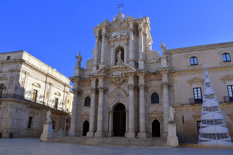 Zwiedzanie: Katedra zachwyca bogatym wnętrzem w stylu barokowym, a także elementami starożytnej świątyni Ateny. Z pewnością warto zwrócić uwagę na kolumny z marmuru, które są pozostałością po antycznej budowli, oraz na rzeźby św. Łucji, patronki miasta, umieszczoną na fasadzie. Niezwykłym punktem jest również pergola - filar, który pochodzi jeszcze z czasów greckich, stanowiąc ślad po starożytnej świątyni.