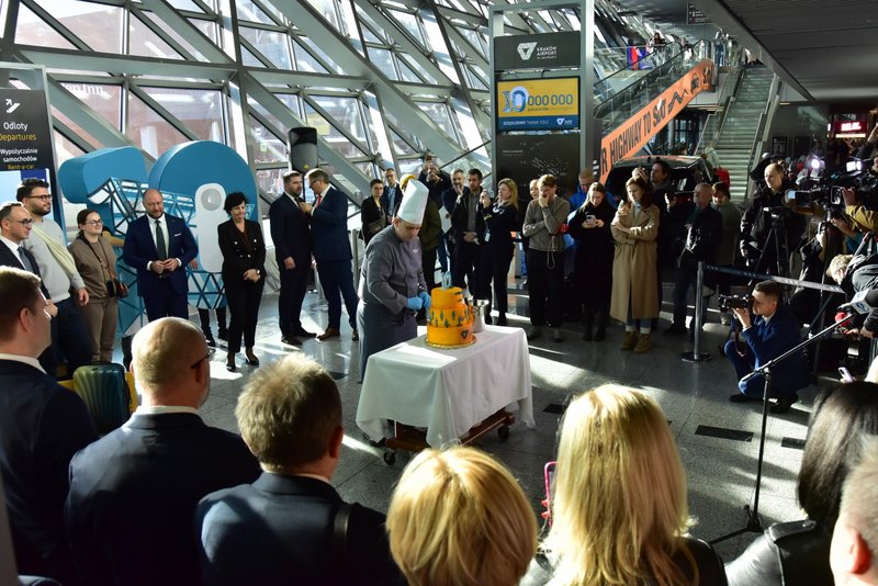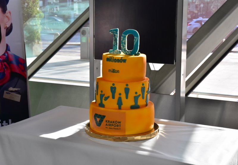 Po oficjalnych przemówieniach, 10-milionowy pasażer wspólnie z Dariuszem Klimczakiem, Ministrem Infrastruktury oraz Zarządem Kraków Airport uroczyście pokroił okolicznościowy tort, który następnie rozdano pasażerom i gościom. Wszyscy uczestnicy wydarzenia wzięli udział w pamiątkowym zdjęciu.